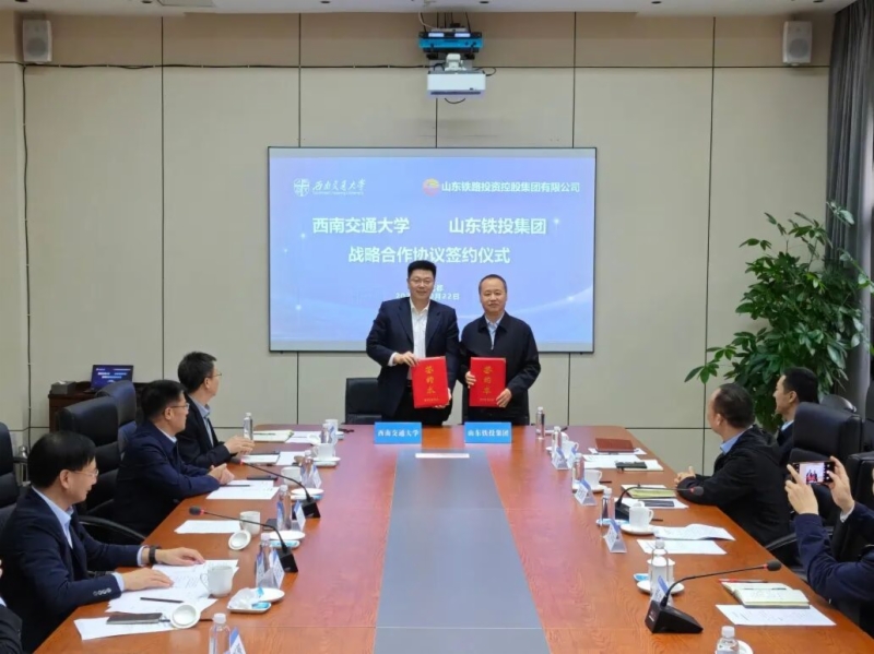 10月22日下午,山东铁投集团与西南交通大学在西南交大九里校区签署战略合作协议。西南交通大学党委副书记、校长闫学东,山东铁投集团党委书记、董事长王卫中共同签署战略合作协议。西南交通大学党委常委、副校长何正友主持签约仪式。