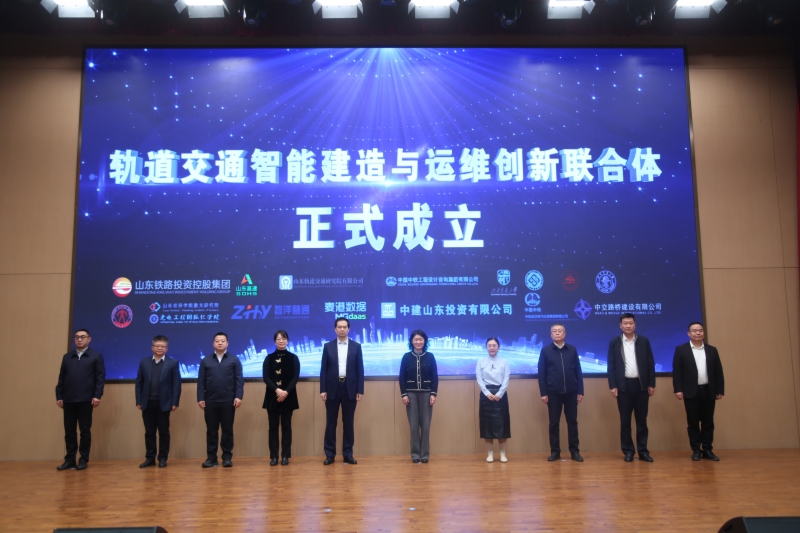 发布会期间还举行了“轨道交通智能建造与运维创新联合体”成立仪式。该联合体由集团牵头,共计16家产业链龙头企业、顶尖高校及科研院所组建,是首批获批的省属国企创新联合体之一。联合体将聚焦“智能建造、智能运维、高端装备、数字底座及人工智能应用”五大方向,攻克“卡脖子”技术与前沿共性关键技术。在共建单位代表的共同见证下,联合体正式成立,为山东轨道交通产业协同创新搭建了全新平台。
