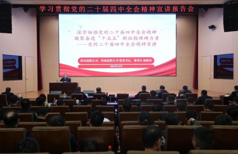12月30日,集团党委委员、副总经理杨俊泉在济青高速铁路有限公司、鲁南高速铁路有限公司宣讲党的二十届四中全会精神。