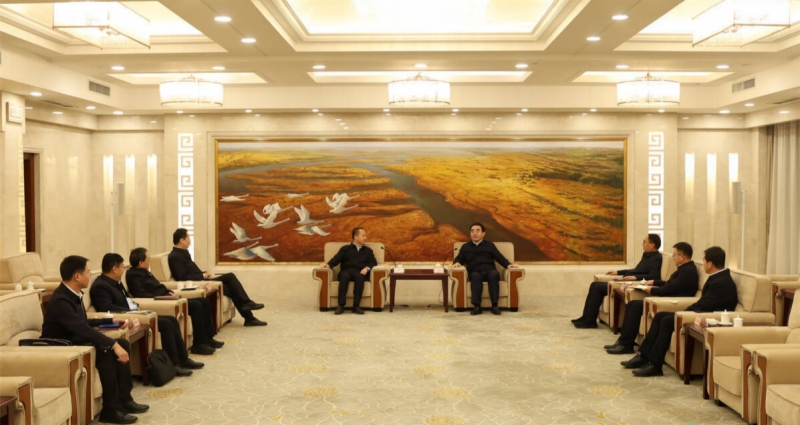 1月8日下午,山东铁投集团党委书记、董事长王卫中带队赴东营市,拜会东营市委书记满慎刚,双方围绕深化合作进行座谈交流。东营市委常委、秘书长成秋林,市委常委、常务副市长杨同贤,山东铁投集团党委副书记、董事乐江华,党委委员、副总经理杨俊泉参加。