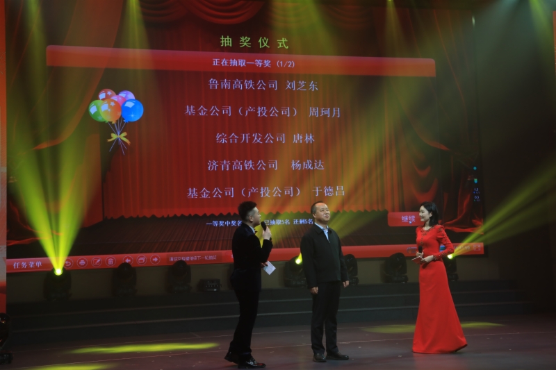 联欢会穿插设置了三轮抽奖环节,其中一等奖由集团党委书记、董事长王卫中抽取,10位幸运职工脱颖而出,将联欢会的欢乐气氛推向高潮。