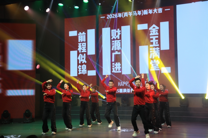 最后,联欢会在歌舞《阳光路上》的恢弘旋律中圆满落幕,全体演职人员与现场观众共同唱响对新年的美好祝福。集团领导班子成员等到场领导走上舞台与演职人员合影留念。