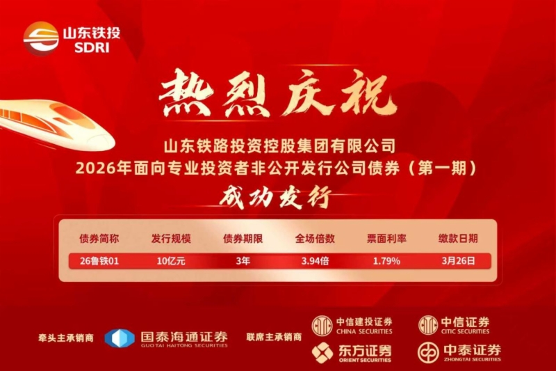 3月25日,山东铁投集团在交易所市场成功发行三年期私募公司债10亿元,发行利率1.79%,较市场估值低20个基点,创山东省AAA企业私募债成本历史新低,全场认购倍数达3.94倍,彰显了专业投资者对集团信用资质、经营根基与发展前景的高度认可。