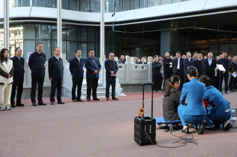 为强化办公区域消防安全管理,提升集团全员应急自救能力,11月13日上午,山东铁投集团在集团总部大楼组织开展消防应急演练暨消防安全技能培训。集团党委书记、董事长王卫中,党委副书记、总经理高立平等领导班子成员参加,党委委员、副总经理周宪东作为演练总指挥全程组织演练。