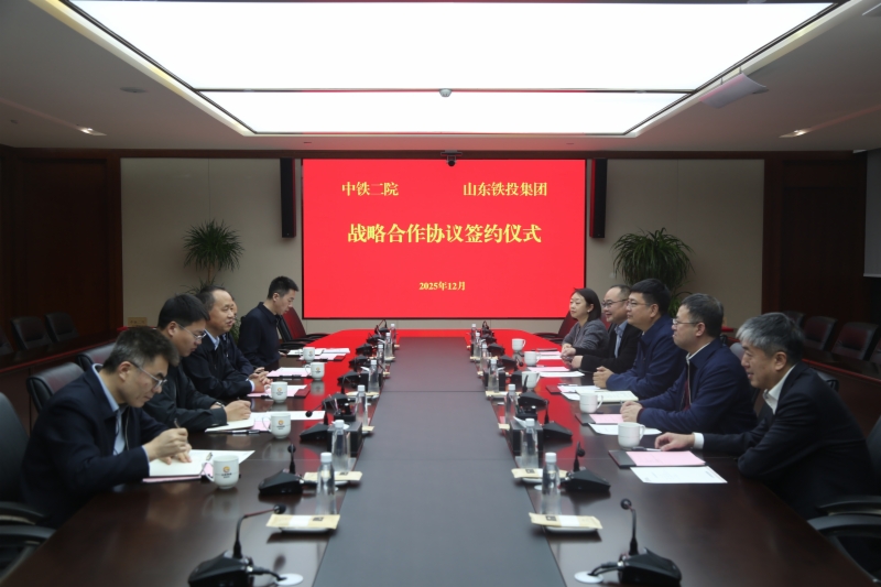 12月24日下午,山东铁投集团与中铁二院在集团总部大楼签署战略合作协议。中铁二院党委书记、董事长杜建军,山东铁投集团党委书记、董事长王卫中出席并见证签约。中铁二院党委常委、副总经理梁春祥,山东铁投集团党委委员、副总经理杨俊泉代表双方签约。