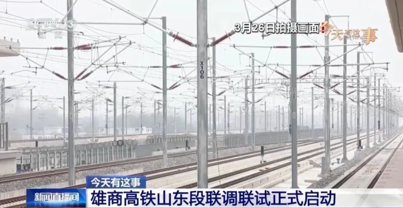 3月27日10时20分, 55102次检测列车从聊城西站缓缓驶出,标志着京港高铁雄安新区至商丘段山东段联调联试正式启动。
