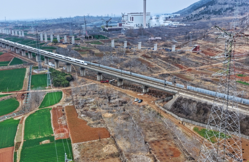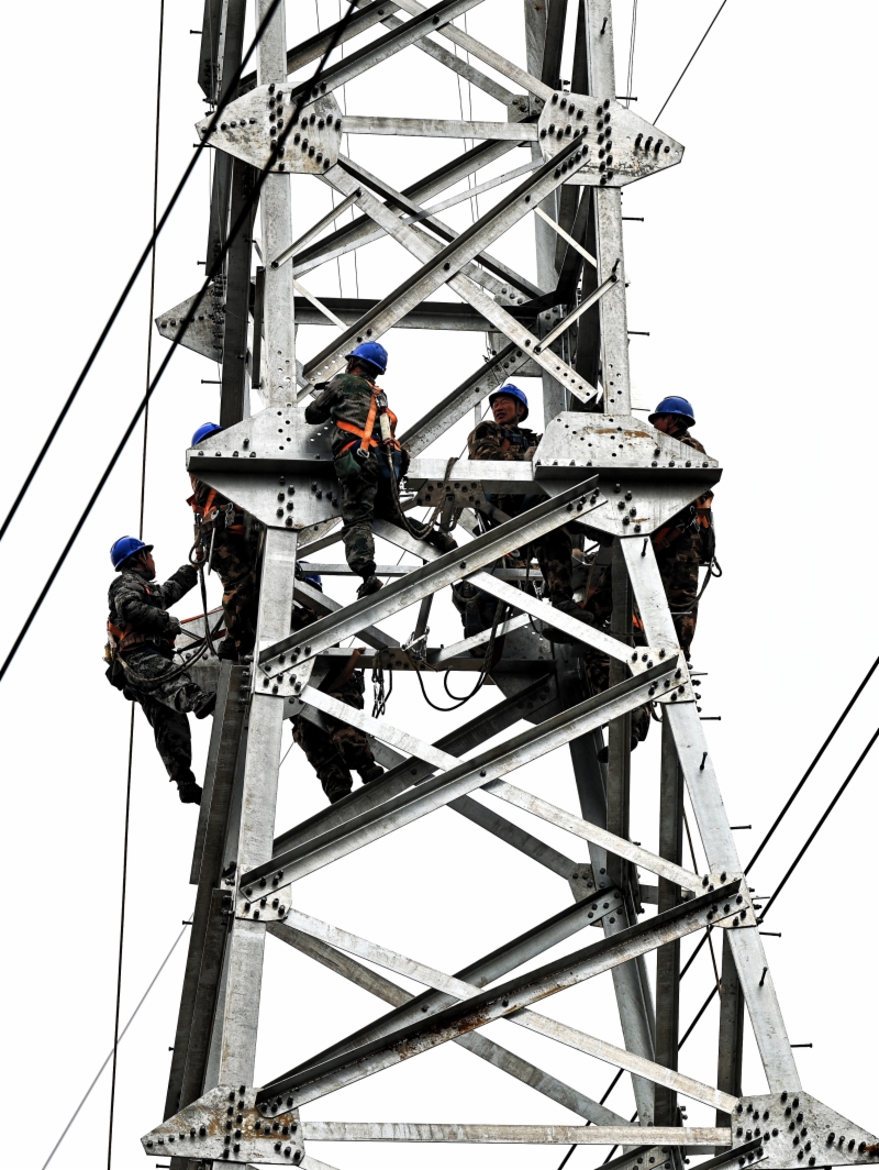 面对工期紧、作业面窄等挑战,项目团队科学组织、高效协同,积极对接国网山东省电力公司、国铁济南局,精准实现铁路天窗点与电力停电计划同步,最大限度争取有效工期、提高施工效率。施工过程中,项目创新采用“耐-直-耐”双回耐张塔架设工艺,大幅提升线路结构稳定性和施工安全性。3月19日至25日,项目顺利完成既有线路防护架搭设、拆网及线路拆旧立新全流程作业。